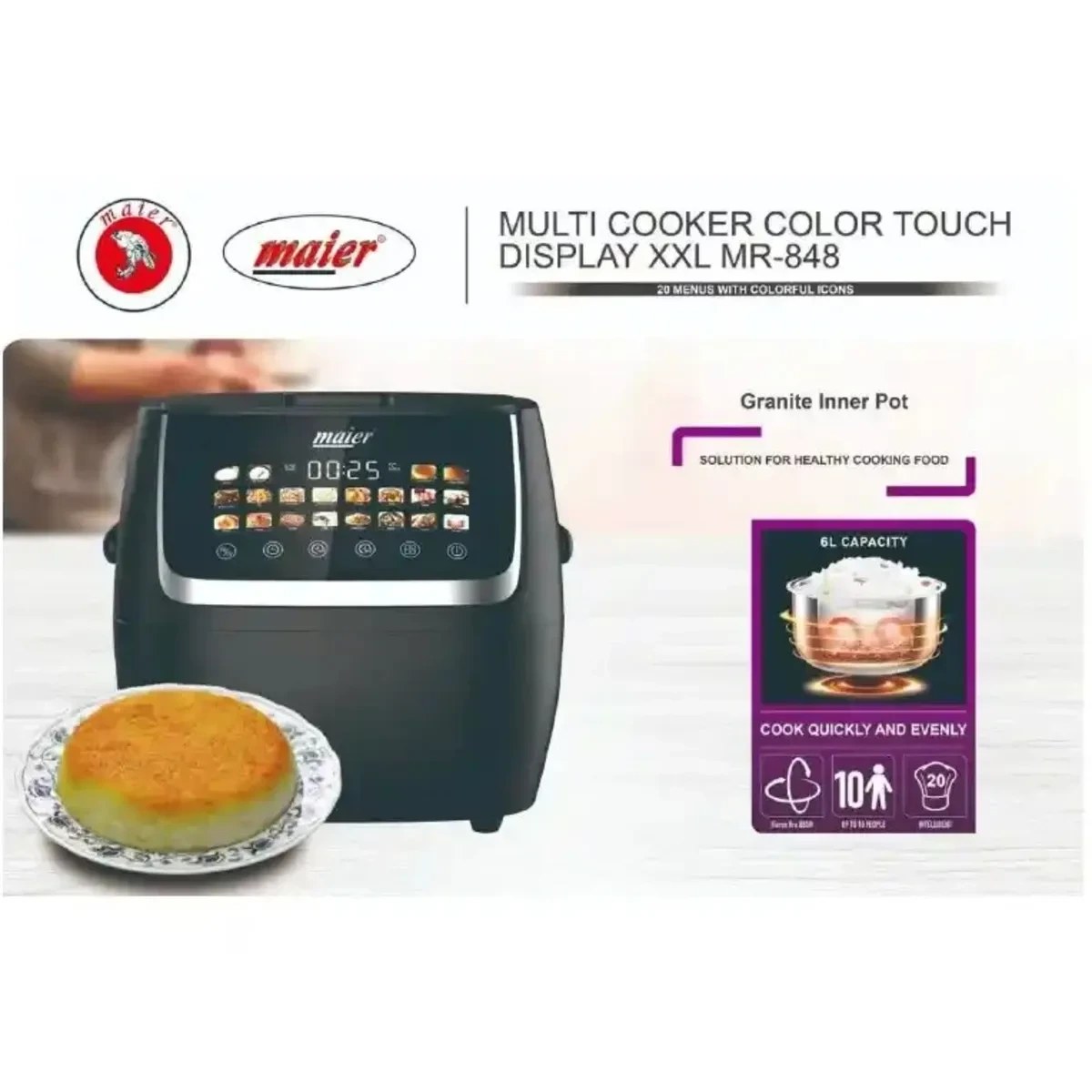 مولتیکوکر مایر مدل 848 مناسب استفاده در خانه، آپارتمان، مهمانیهای خانوادگی و حتی فضاهای کوچک آشپزخانه است. با کمک این دستگاه میتوانید انواع غذاها از جمله پلو، خوراکها، استیک، غذاهای بخارپز، سوپهای خوشمزه و حتی دسرهای خانگی را بدون نیاز به چندین وسیله پخت جداگانه آماده کنید. رابط کاربری ساده و برنامههای پیشفرض، تنظیمات پخت را برای هر سطح کاربری — از مبتدی تا حرفهای — آسان میسازد.