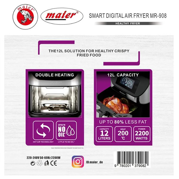 سرخکن ۱۲ لیتری مایر مدل 908، یک ابزار نوآورانه و چندمنظوره برای تهیه غذاهای سالم، کمچرب و حجیم است که با طراحی کاربردی و ظرفیت بالا، امکان آمادهسازی حجم زیادی از مواد غذایی را فراهم میکند. اگر به دنبال دستگاهی حرفهای، کارآمد و مدرن برای آشپزی سالم و سریع هستید، این محصول انتخابی هوشمند خواهد بود.