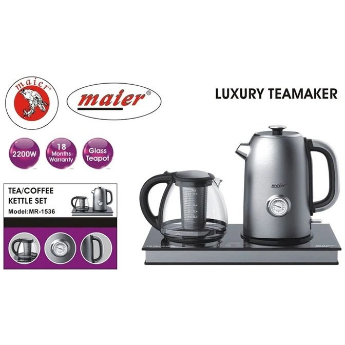چای ساز مایر مدل MR1536 ظرفیت ۱.۷ لیتر با کتری استیل ضد زنگ