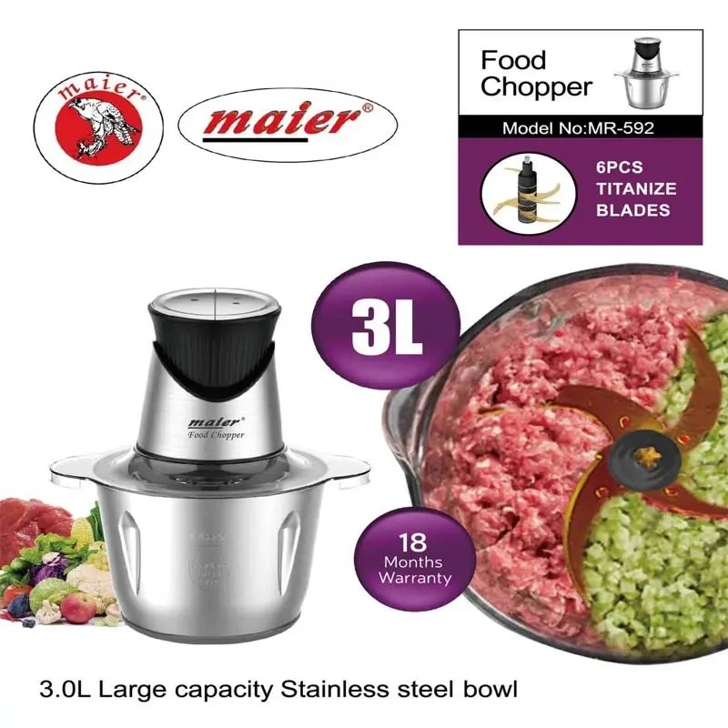 یکی از مهمترین مزایای خردکن برقی مایر MR592، ظرفیت بزرگ ۳ لیتر آن است که امکان خرد کردن مقادیر بیشتر مواد غذایی را در یک مرتبه فراهم میکند — مناسب برای خانوادههای پرجمعیت یا تهیه غذاهایی با حجم زیاد. موتور قدرتمند این خردکن، همراه با تیغههای استیل ضدزنگ تیز و مقاوم، عملکردی یکنواخت و سریع در خرد کردن گوشت، سبزیجات، پیاز، مغزها و مواد سختتر ارائه میدهد. طراحی ظروف و تیغهها بهگونهای است که نتیجه خردکردن با حداقل لهشدگی و بیشترین کیفیت همراه باشد.