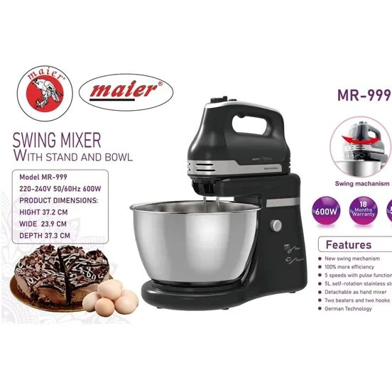 اگر به دنبال یک همزن قدرتمند، بادوام و حرفهای برای آشپزخانه خود هستید، همزن کاسهدار مایر مدل 999 از برند معتبر مایر آلمان گزینهای بسیار مناسب برای شماست. این دستگاه با طراحی مدرن و کیفیت ساخت بالا، انتخابی ایدهآل برای خانمهای خانهدار، قنادان و آشپزهای حرفهای به شمار میآید.