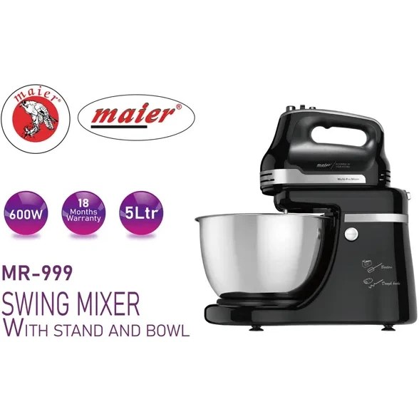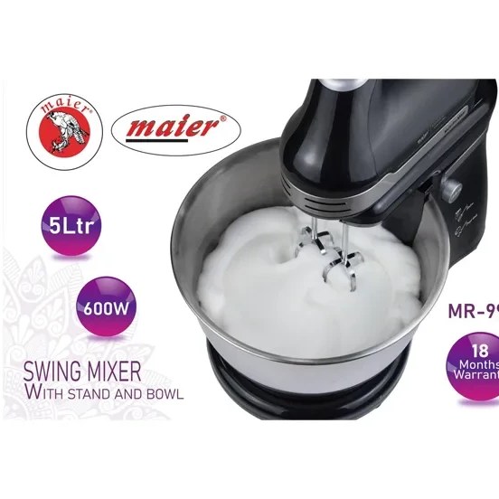 همزن مایر مدل 999 مجهز به موتور 600 وات فول کوپر (تمام مسی) است که از دوام و قدرت بالایی برخوردار بوده و عملکردی پایدار و قدرتمند را در اختیار شما قرار میدهد. کاسهی استیل ضدزنگ این همزن با ظرفیت 5 لیتر، امکان تهیه حجم زیادی از مواد غذایی را به راحتی فراهم میکند.