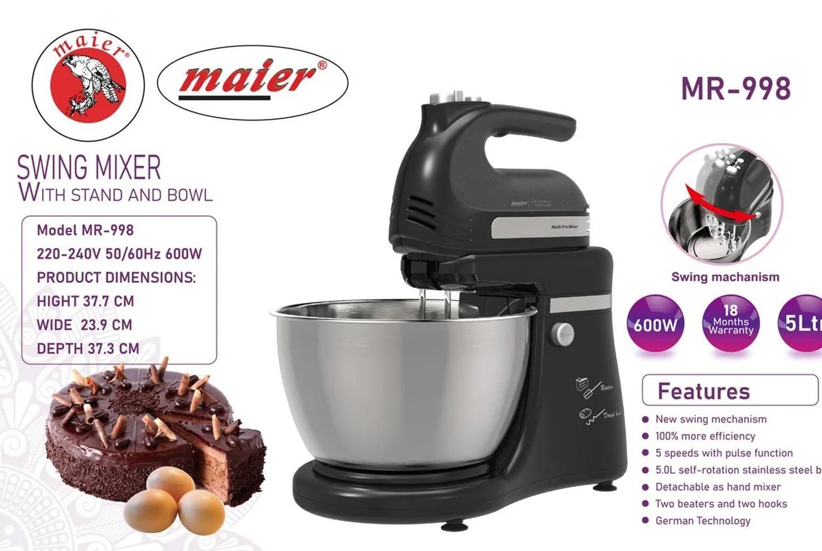 این مدل با پنج سرعت متفاوت و دکمه توربو، کنترل دقیقتری بر فرآیند هم زدن مواد به شما میدهد. فرقی ندارد قصد تهیه خمیر نان داشته باشید یا خامه فرمگرفته؛ مایر مدل 998 با تنظیمات متنوع، سرعت بالا و توان قدرتمند خود، نیازتان را بهخوبی پاسخ میدهد. علاوه بر این، بدنه مقاوم و طراحی کاربردی دستگاه، استفاده روزمره و طولانیمدت را بدون افت عملکرد ممکن میسازد.