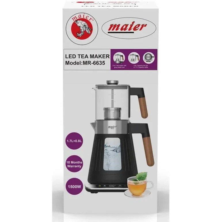 چای ساز مایر مدل MR1536 ظرفیت ۱.۷ لیتر با کتری استیل ضد زنگ